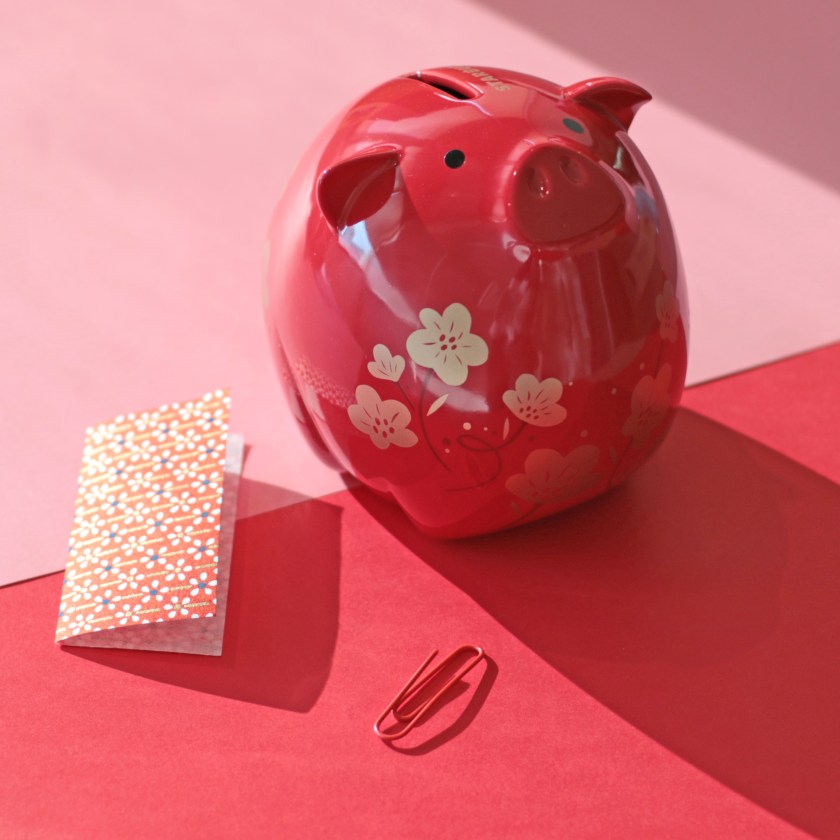 Starting January 8, Starbucks is releasing the collection complete with tumblers and mugs designed with delightful pig drawings in detailed water color texture and floral elements in pink, red and yellow palettes. Even the Starbucks Bearista gets a porky make-over, dressed up in a cute pig outfit.